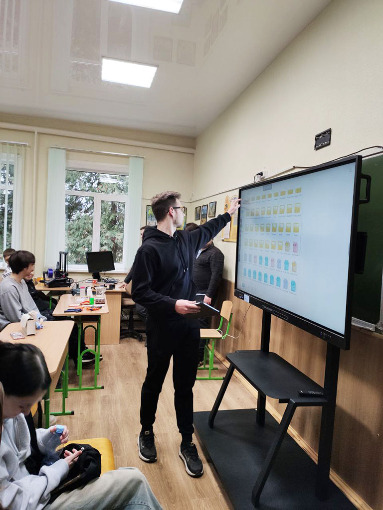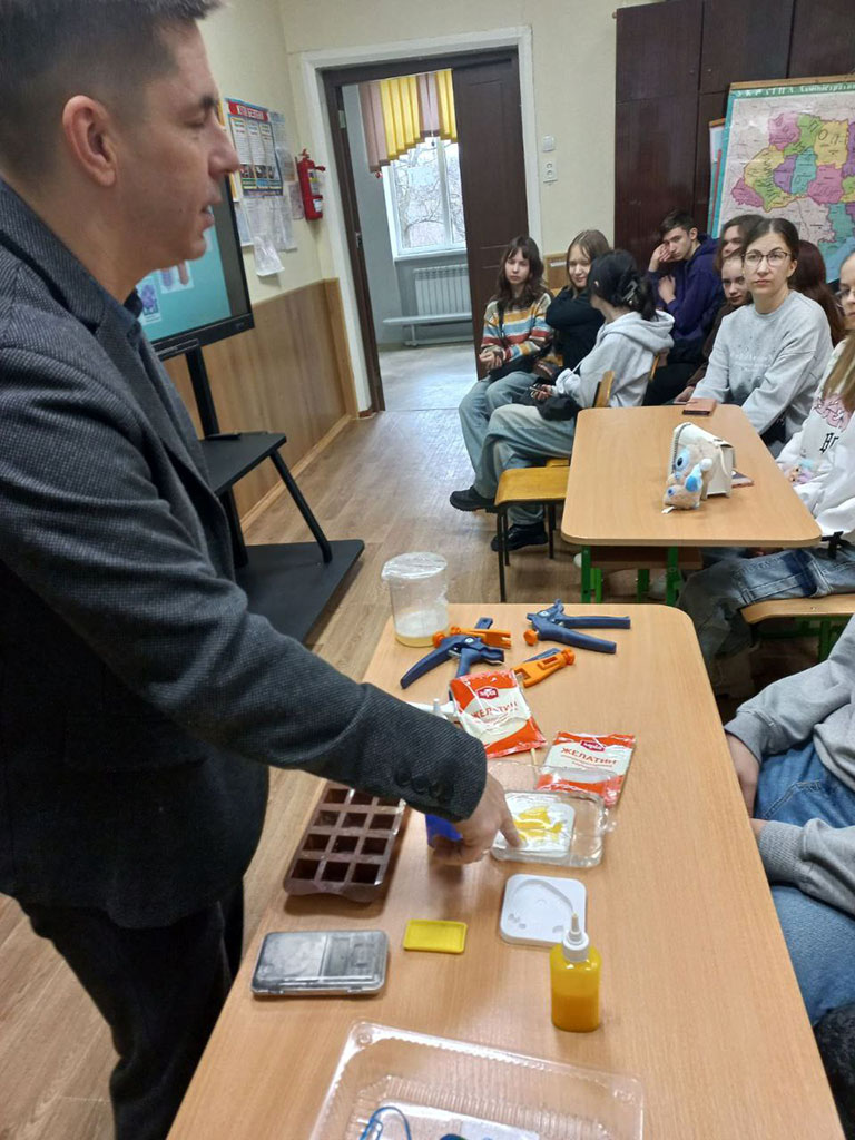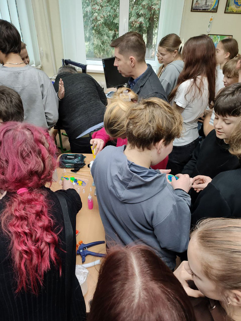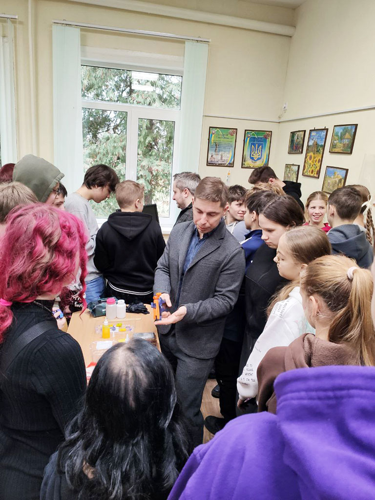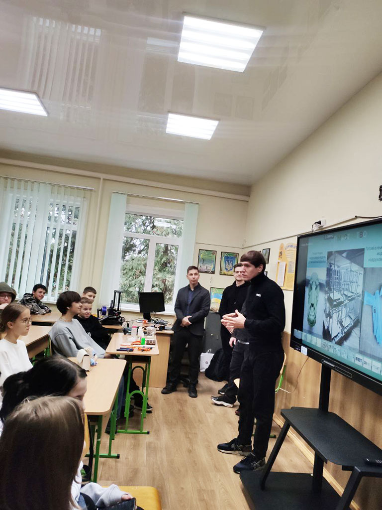 Команда нашого університету у складі викладачів кафедри Технологія пластичних мас і біологічно активних полімерів, а саме: професора Володимира Лебедєва, доцента Артема Карєва, старшого викладача Андрія Воронкіна та завідуючої відділом науково-технічної бібліотеки Лідії Бондаренко розпочали новий напрямок роботи для учнів старших класів КЗ Покотилівський ліцей № 2. Сьогоднішнє покоління школярів спонукає до нових та оригінальних форматів зустрічей. Тож для практичної роботи з матеріалами було представлено 3D-принтер, щоб школярі доторкнулися до сучасних інтегрованих технологій 3D-біодруку клітин полімерів і змогли створювати об’єкти різної складності шляхом пошарового нанесення полімерного матеріалу.