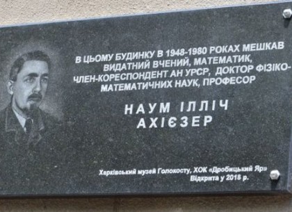 Наум Ілліч Ахієзер (06.03.1901–03.06.1980) – видатний вчений-математик, фахівець в галузі теорії функцій, теорії апроксимації та функціонального аналізу, талановитий педагог. Брат відомого фізика-теоретика Олександра Ілліча Ахієзера. Доктор фізико-математичних наук (1936), професор (1941), Член-кореспондент Всеукраїнської Академії Наук (1934). Удостоєний премії ім. П. Чебишева АН СРСР (1949) за монографію «Лекції з теорії апроксимації». За визначні успіхи в галузі математичних наук нагороджений медаллю Леонарда Ейлера АН СРСР (1957).